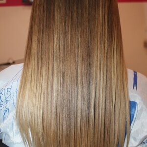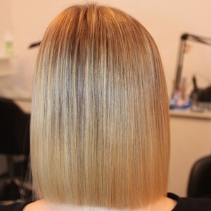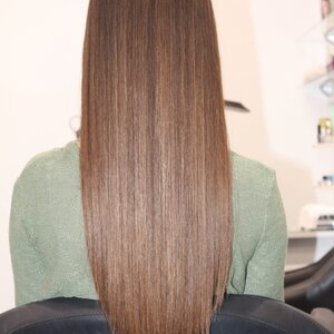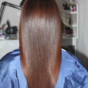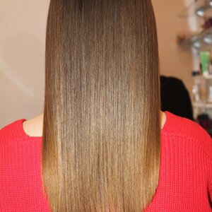 Волосы обрабатываются составом с высоким содержанием кератина и ухаживающих компонентов, а затем разглаживаются с помощью утюжка. В результате волосы становятся прямыми и гладкими, обретают упругость и блеск. Эффект сохраняется на протяжении нескольких месяцев.