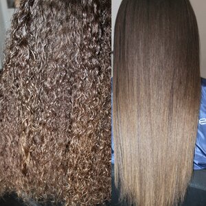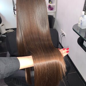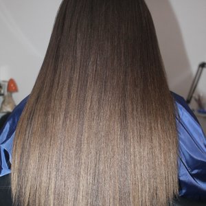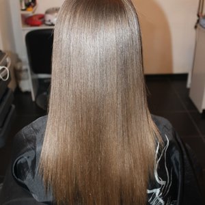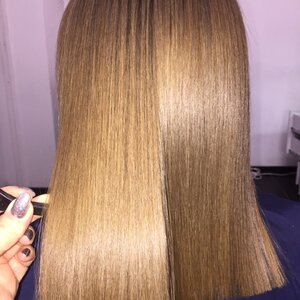 Волосы обрабатываются составом с высоким содержанием кератина и ухаживающих компонентов, а затем разглаживаются с помощью утюжка. В результате волосы становятся прямыми и гладкими, обретают упругость и блеск. Эффект сохраняется на протяжении нескольких месяцев.